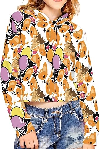 Kids Crop Tops for Girls 5-14 Years Old Trendy Cropped Long Sleeve Hoodie Pullover Teen Hooded Sweatshirt