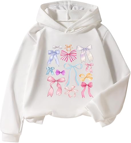 SweatyRocks Girl's Bow Graphic Hoodies Long Sleeve Hooded Sweatshirt Cute Pullover Tops