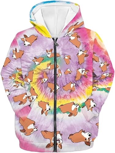 Girls & Boys Cute Funny Animal Print Zipper Hoodies with Pockets Soft Zip Up Sweatshirts