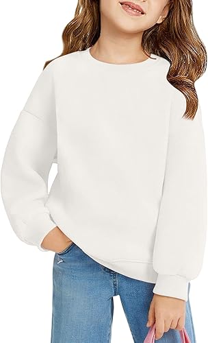 Cozeyat Girls Crop Tops Kids Long Sleeve Pullover Sweatshirts Girls Cropped Crewneck Sweatshirt for 5-14 Years Teen Girl