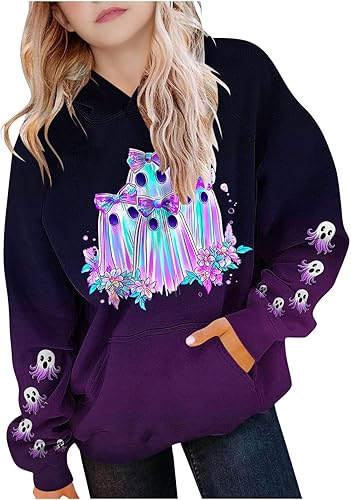 Cute Sweatshirt for Girls Halloween Spooky Season Graphic Hoodies Oversized Fashion Casual Pullovers 5-15 Years