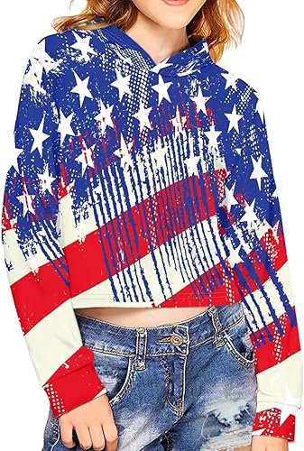 Yewattles Comfy Girl Crop Tops Hoodies Outdoor Streetwear Long Sleeve Pullover Sweatshirt for Party Sports Age 5-14