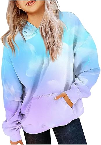 Hoodies for Girls Trendy Preppy Girls Hooded with Pocket Oversized Cute Sweatshirts Long Sleeve Y2k Gradient Hoodies