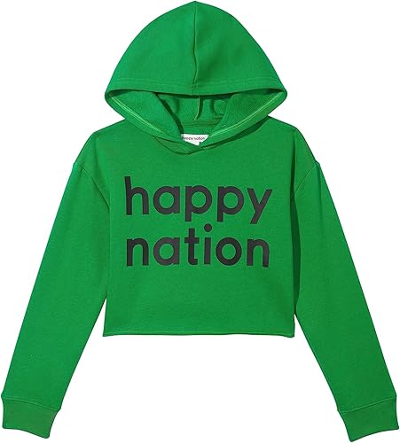 Happy Nation Girls Fleece Crop Hoodie Sweatshirt