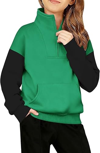 Teen Girls Sweatshirt Cute Half Zip Lightweight Pullover Casual Long Sleeve Fall Toddler Kids Outfits with Pocket