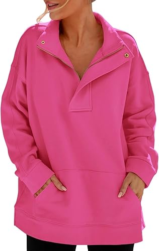 Womens Oversized Sweatshirt Hoodies Quarter Zip Pullover Loose Casual Long Sleeve Teen Girls Fashion Fall Y2k Clothes