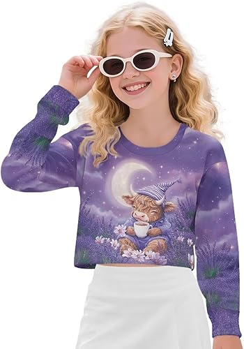 Wanyint Girls Crop Top Sweatshirt Crewneck Long Sleeve Pullover, Cute Fall Winter Loose Fit Tops for 5-14 Years Teen Kids