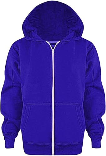 Boys Girls Zipper Hoodies Sweatshirt Youth Solid Classic Hoodies Soft Full Zip Hooded Sweatshirts for Teens Kids Unisex 2-Blue 9-10 Years