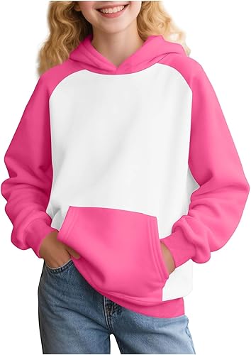 Girls Color Block Hoodies Loose Raglan Long Sleeve Sweatshirt Tops Pullover Casual Fall Winter T-Shirts for 2-15 Years