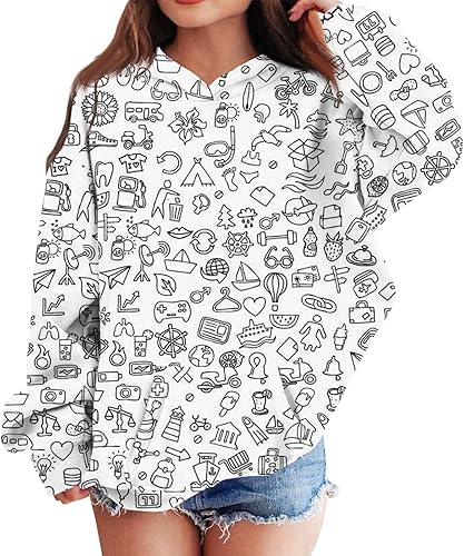 Graphic Hoodies Teen Girls Boys Kids Long Sleeve Cute Oversized Sweatshirts Loose Pullover Preppy Clothes 2-14 Years