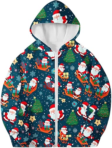 Kids Pullover Hoodie With Christmas Print Long Sleeve Pocket Casual Sweatshirt For Winter Holiday Season Girls Fashion (2-Dark Gray,13-14 Years)