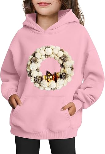 Kids Pullover Hoodie With Christmas Print Long Sleeve Pocket Casual Sweatshirt For Winter Holiday Season Girls Fashion (3-Pink,3-4 Years)