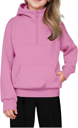 Cute Hoodies For Teen Girls Oversized Cropped Sweatshirts Half Zip Clothes Pullover Fall Winter Teens Kids Outfits