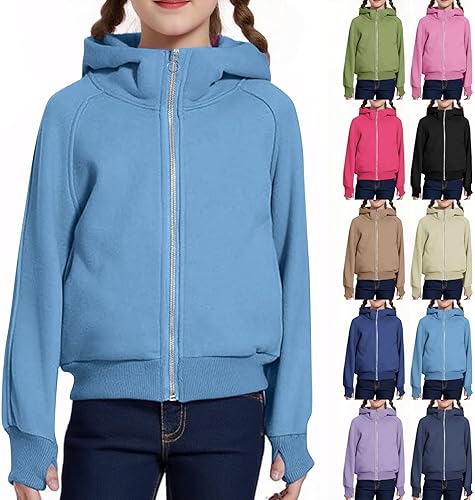 Teen Girls Hoodies Zip Up Pullover Kids Winter Warm Jackets Fashion Outfits Clothes Fleece Hooded Sweatshirts