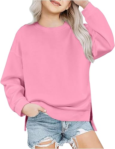 Girls Fall Winter Sweatshirts Long Sleeve Irregular Hem Fashion Crew Neck Loose Plus Size Pullover Sweatshirt