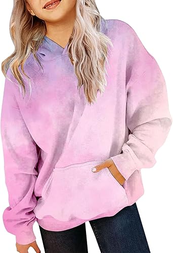 Oversize Hoodies Girl Sweatshirt Gradient Hooded Pullover Casual Long Sleeve Hoodie Fall Fashion Clothes with Pocket