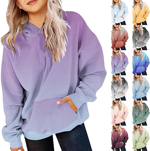 Hoodies for Teen Girls Trendy Preppy Hooded Oversized Cute Sweatshirts Long Sleeve Gradient Hoodie for Girl
