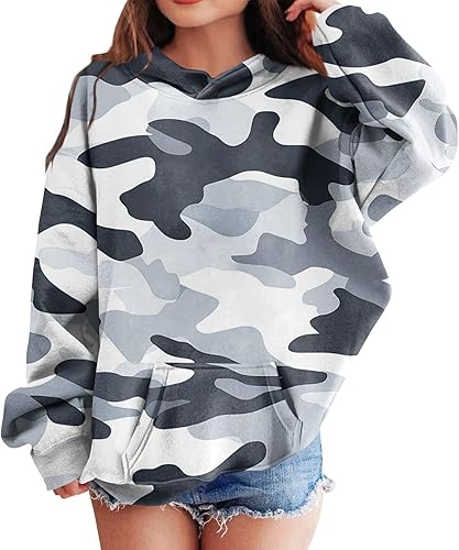 Camo Hoodies For Girls Cute Long Sleeve Sweatshirt Hooded Oversized Teen Boys Hoodie Y2K Clothes 2-14 Years