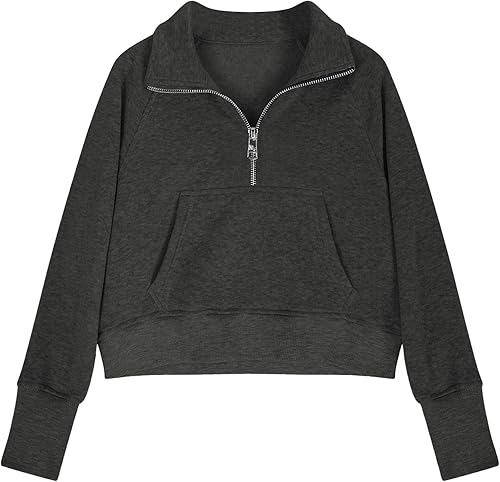 Sweatshirts for Teen Girls Half Zip Long Sleeve Cropped Hoodies Trendy Preppy Cute Clothes for Girls with Thumb Hole