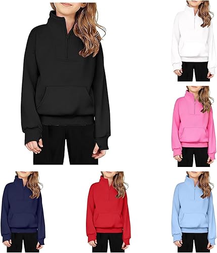 Girls Casual Long Sleeve Hoodies Cute Oversized Pocket Sweatshirt Tops Crewneck Winter Long Sleeve Tops Shirts
