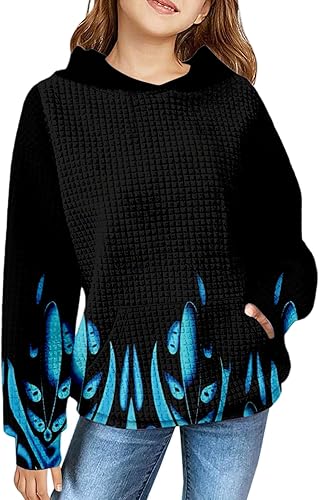 Girls Waffle Hoodie Gradient Floral Print Casual Hooded Sweatshirt Kids Long Sleeve Pullover Top for Daily School Wear
