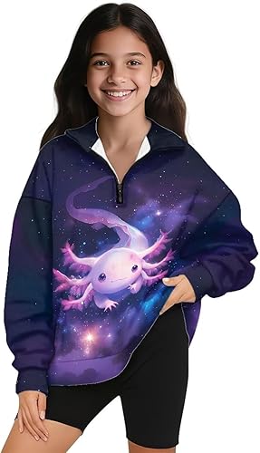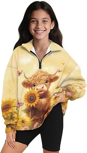 Pensura Kids Girls Sweatshirt Oversized School Long Sleeve Pullover Top Casual Quarter Zip Pullover Sweatshirts
