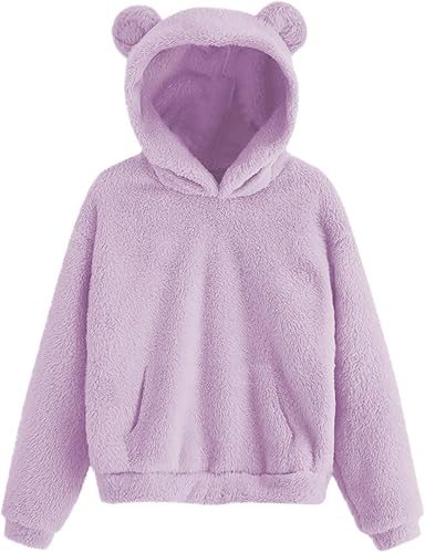 Girls Fuzzy Hoodies Fall Winter Warm Cozy Hooded Sweatshirts Casual Cute Soft Solid Color Pullovers Long Sleeve Tops