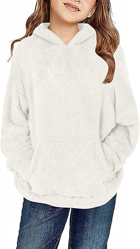 Girls Fuzzy Fleece Pullover Hoodies Sweatshirt Casual Sherpa Winter Tops Warm Outwear Coat with Pockets 4-14 Years