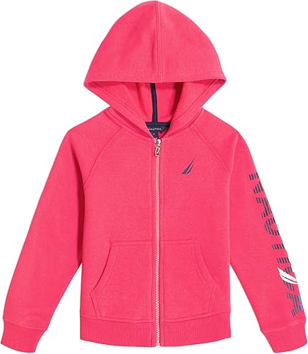 Nautica Girls' Logo Sweatshirt, Fleece Hoodie With Full-zip Front & Pockets