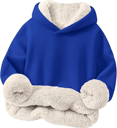 Fleece Hoodies Girls Kids Sherpa Lined Pullover Sweatshirt Warm Long Sleeve Hooded Tops Plush Winter Outwear Coat