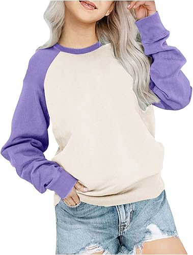 Hoodies for Teen Girls Fashion Sweatshirt Soft Pullover Tops Kids Color Block Clothes Long Sleeve Fleece Shirts