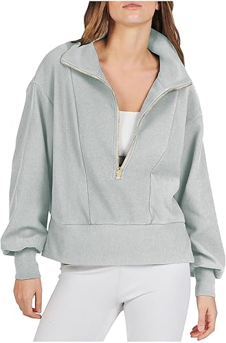 Womens Half Zip Sweatshirt Fashion 2025 Long Sleeve Cropped Pullover Casual Fall Aesthetic Teen Girls Tops Y2k Outfit