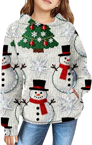 Ugly Christmas Waffle Hoodie for Girls Winter Cute Funny Xmas Print Fleece Sweatshirt Boys Fashion Preppy Ugly Sweater