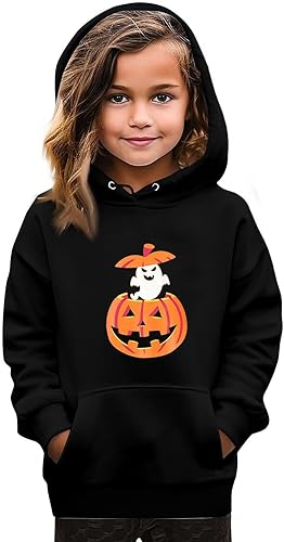 Kids Halloween Hoodie Cute Pumpkin Print Pullover Sweatshirt Warm Fall Winter Hooded Top for Boys Girls