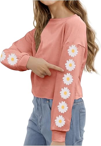Kids Crop Tops Girls Long Sleeve Tee Shirts Cute Daisy Pinted Fashion Cropped Sweatshirt Pullover Top Blouses Clothes