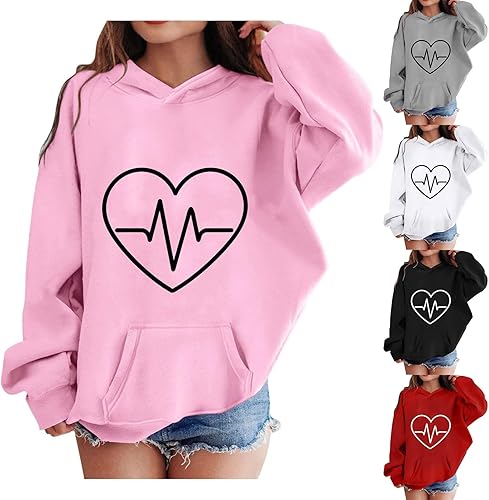 KAGAYD Cute Heart Hoodies for Teen Girls Valentine's Day Preppy Hooded Sweatshirts Oversized Long Sleeve Shirts
