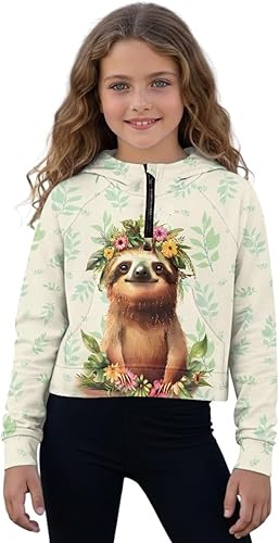 Girls' Hoodies Sweatshirts Half Zipper Pullover Crop Tops for Teen Girls Long Sleeve Sweater Thumb Hole
