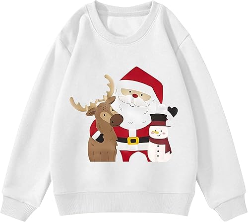 Christmas Hoodie for Boys Girls Kids Funny Xmas Graphic Print Hooded Sweatshirt Snowflake Reindeer Santa Xmas Knitted Tops