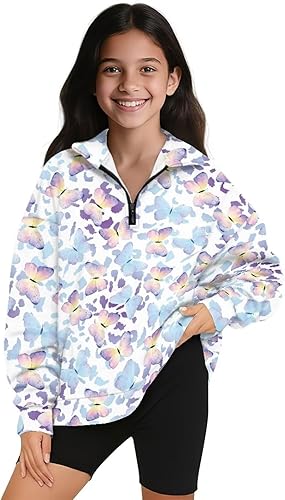 Pensura Girls Hoodies Sweatshirts Oversized Half Zip Collar Sweatshirts Soft Long Sleeve Pullover Tops