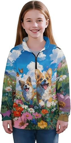 Suobstales Girls Half Zipper Sweatshirts Cute Trendy Fall Pullover Long Sleeve Sweater Fall Clothes Tunic Tops for 5-14 Years