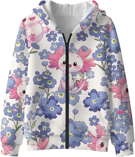 Forchrinse Kids Hoodies for Girls Cute Zip Up Hoodie Sweatshirt Casual Long Sleeve Hooded Jacket with Pockets