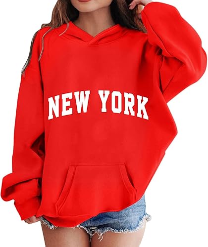 New York Hoodies for Teen Girls Letter Print Graphic Hoodie Long Sleeve Hooded Sweatshirt Casual Pullover Tops 4-13Years
