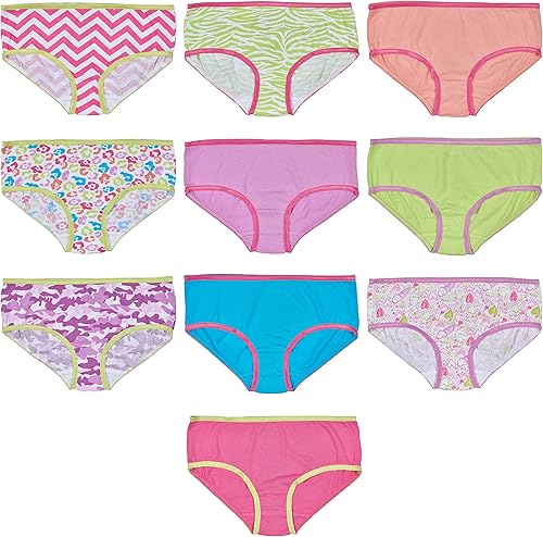 Trimfit Girls Soft Cotton Colorful Hipster Panties (Pack of 10 Kids Underwear)