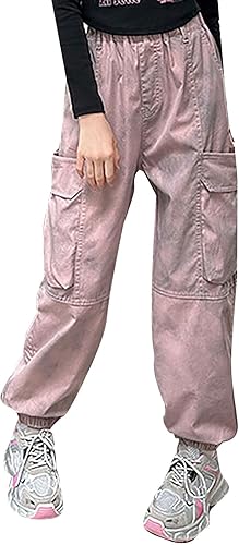 Baggy Cargo Pants for Girls Elastic Waist Casual Wide Leg Breathable Jeans with Pockets Soft Loose Streetwear Trousers