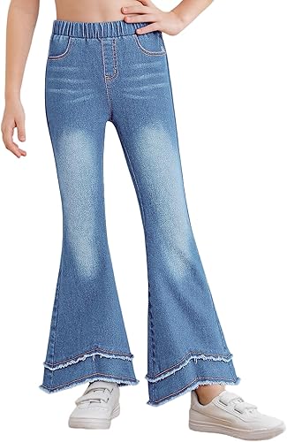 SEAUR Girls Flare Jeans Denim Bell Bottom Pants 70s Retro Flare Jeans High Waisted Wide Leg Trousers 7-14T