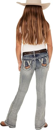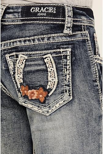 Grace in LA Girls' Little Light Wash Horseshoe Floral Bootcut Denim Jeans Medium Wash 6 REG