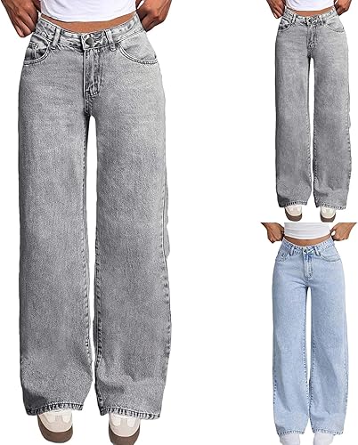 Girls Wide Leg Jeans Baggy Versatile Straight Palazzo Casual Vintage High Waist Denim Pants with Pockets