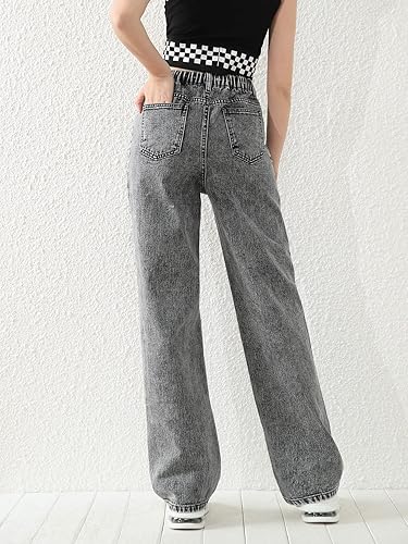 Verdusa Girl's Elastic High Waist Straight Leg Jeans Denim Pants Grey 10-11Y