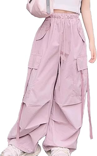 Girls Cargo Wide Leg Pants Baggy Streetwear Hip Hop Trousers with Pockets Fashion High Elastic Waist Loose Palazzo Pants