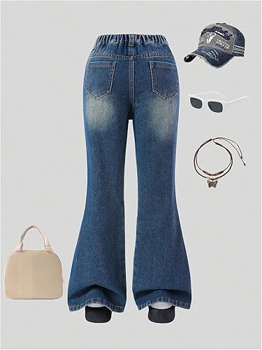 Girls Jeans High Waist Comfort Fit Denim Pants Functional Pockets Relaxed Loose Casual Everyday Wear School